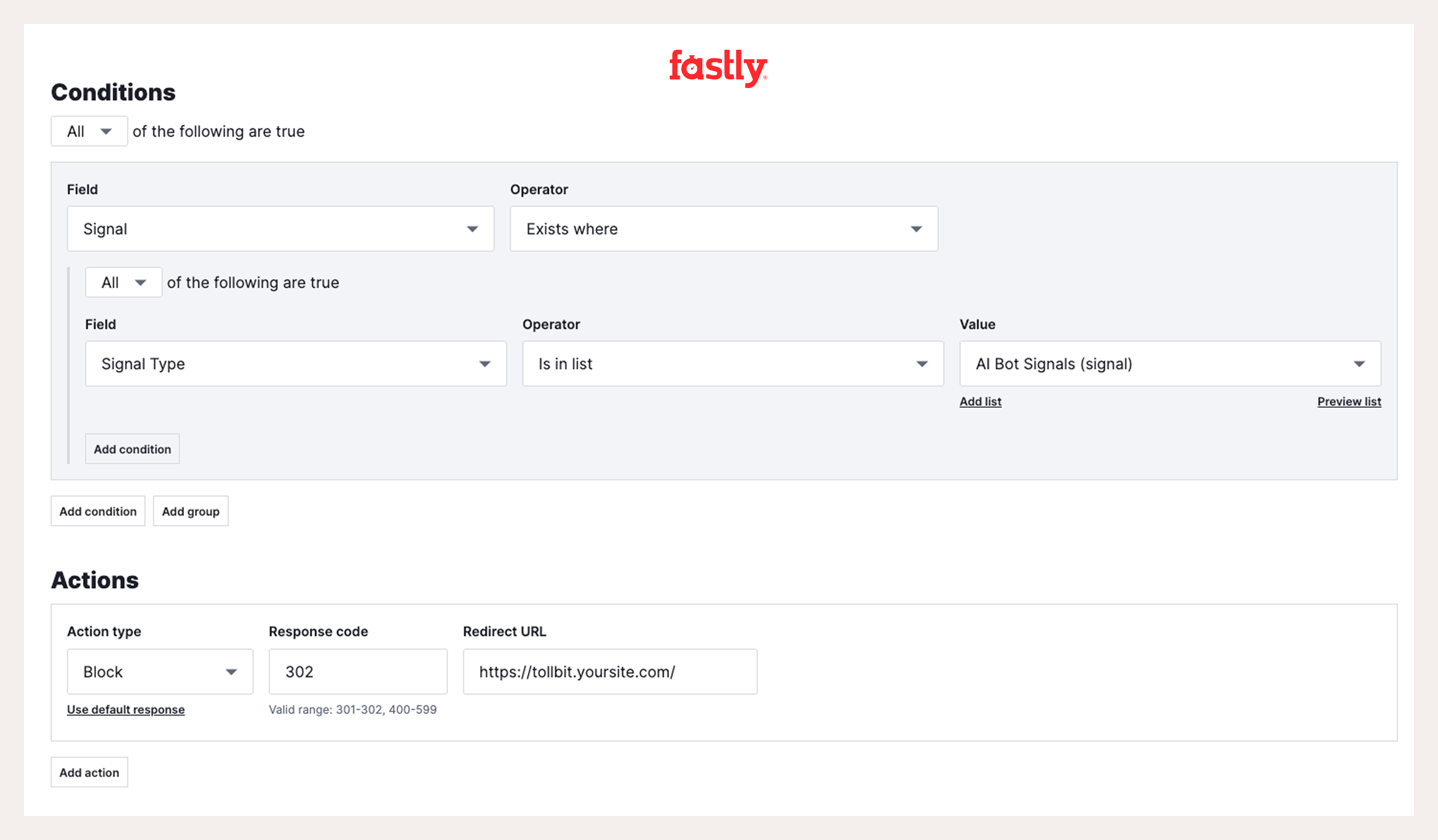 Fastly & TollBit will continue to evolve this integration, with an eye toward making AI bot enforcement and analytics workflows more efficient to serve the publishing, ecommerce, and other content-rich communities even more in the future. We’d love to hear your feedback on how we can keep building a safer, fairer internet together.