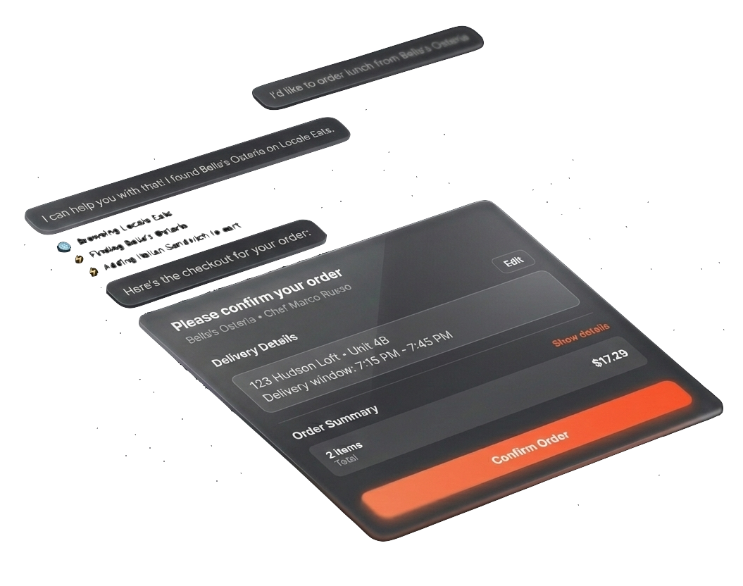 Embed interactive UI, exposed by sites, directly into your agent's output to bridge the gap between model inference and real-world execution.