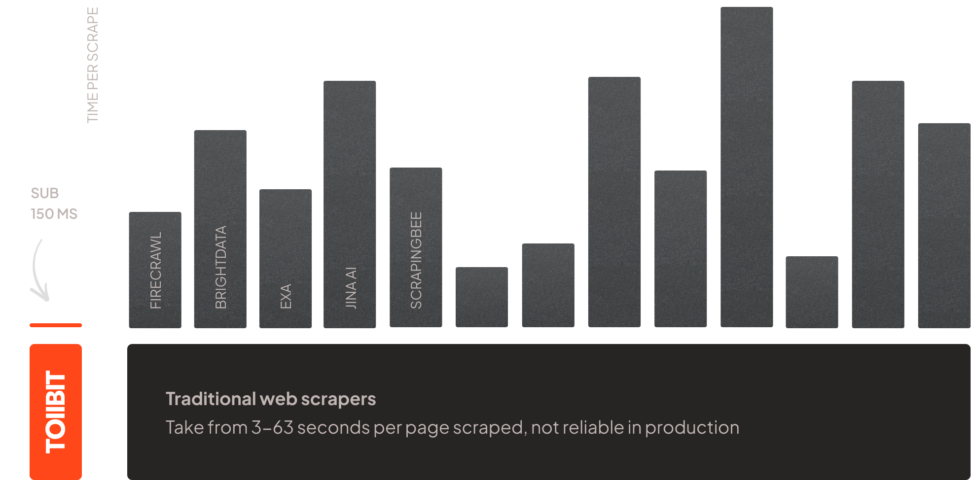 Scraping is slow, inefficient, and non-deterministic. TollBit is a first party install on sites, so we fetch content instead of scraping. That makes us blazingly fast and reliable (<200ms).